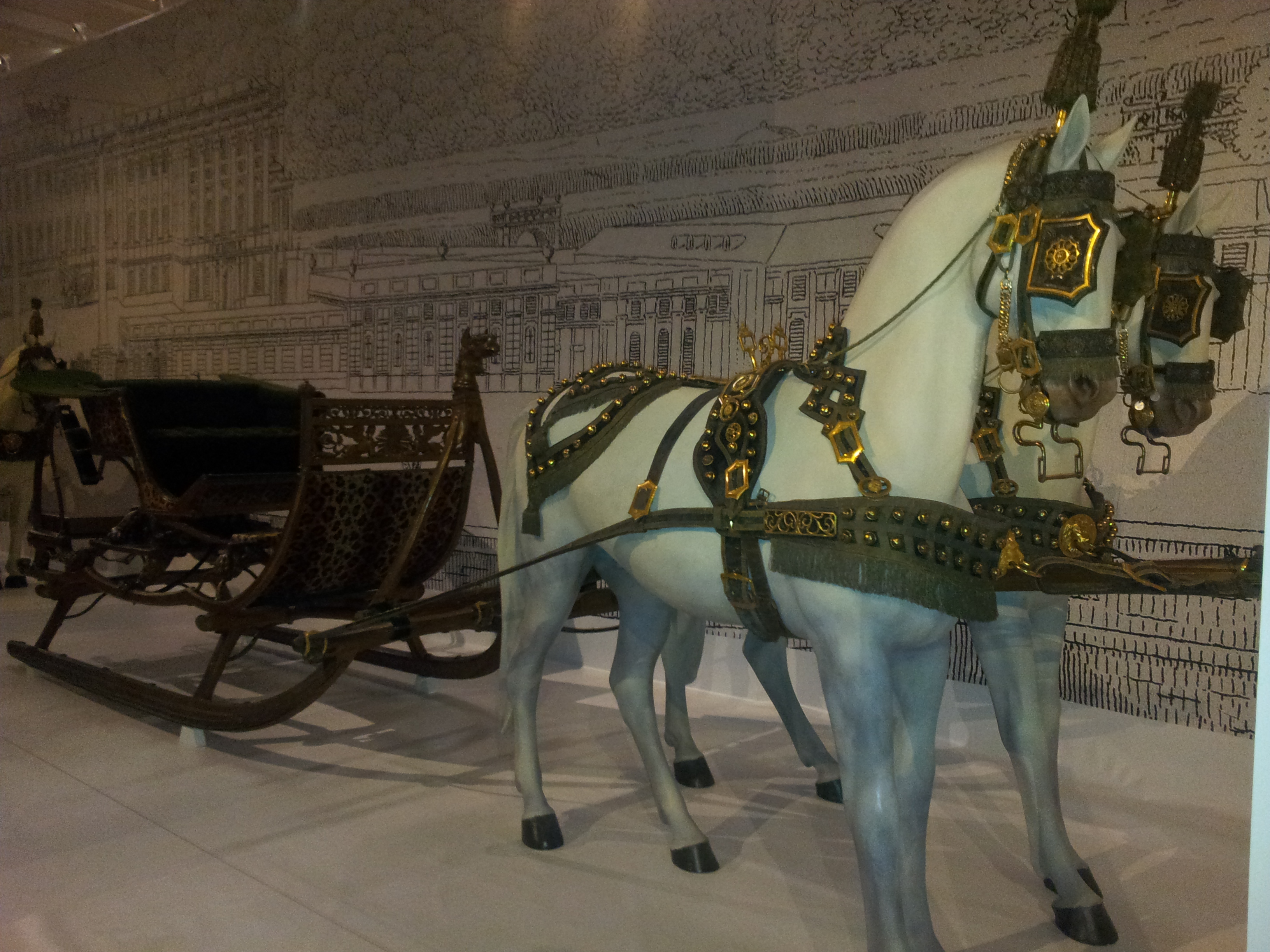 Wie die Logistik und der Transport – in erster Linie von Personen – gelöst wurde, ist Thema der Schau. Die Wagenburg besitzt einige besonders schöne Kutschen aus dieser Zeit, Teile von Spezialschlitten wurden rekonstruiert und als Ergänzung stehen Figurinen mit prächtigen Hofuniformen herum.