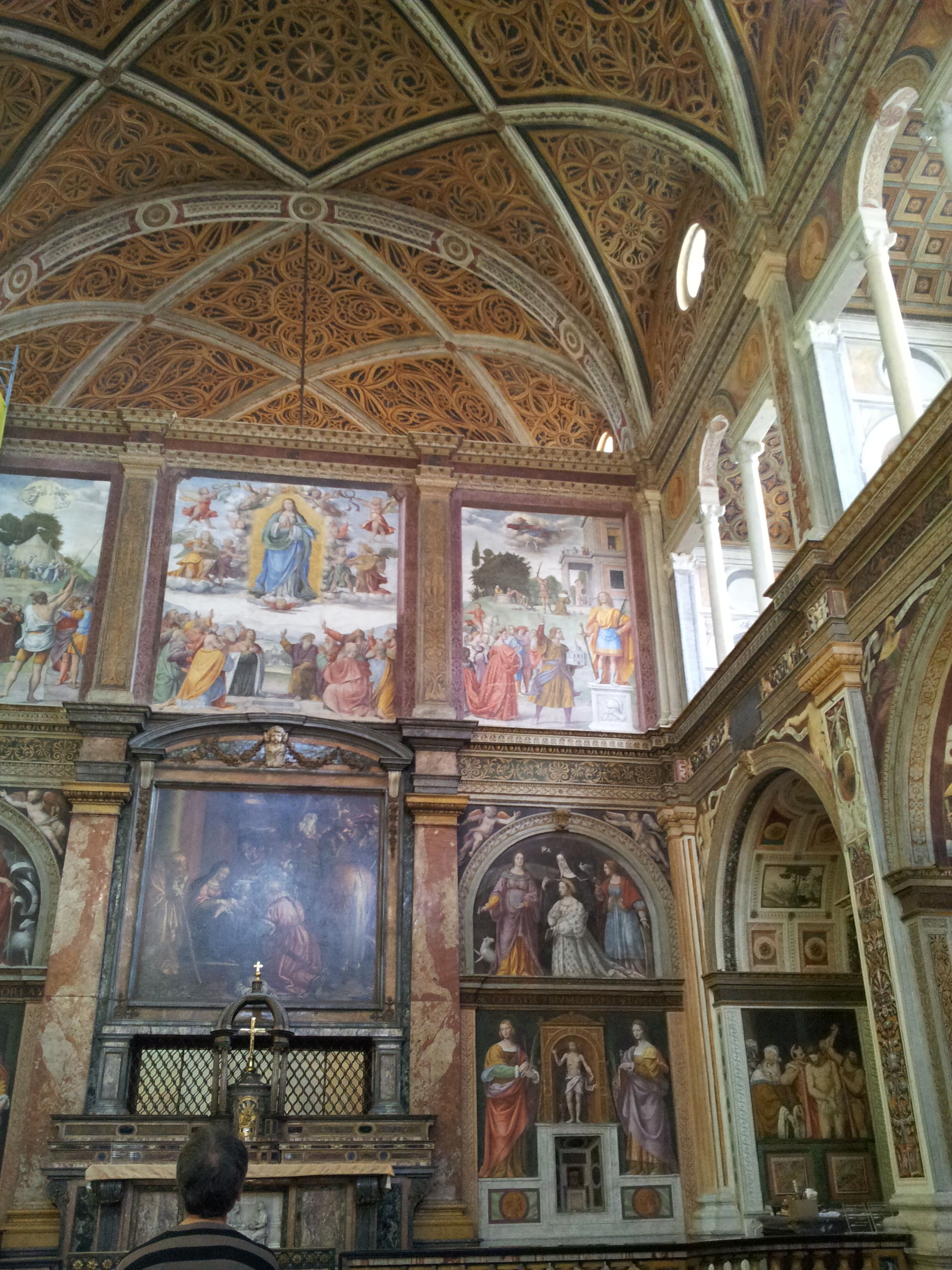 Doch in der Kirche San Maurizio befindet sich ein außergewöhnlicher Freskenzyklus aus dem 16. Jahrhundert. Hinter der eher unspektakulären Fassade findet sich ein komplett ausgemalter Kirchenraum und hinter dem Altar ein etwas größerer Raum, der sog. Nonnenaal (von dem aus die Nonnen der Messe beiwohnen konnten), er ebenfalls rund um eine Art Chorgestühl reich freskiert ist. Mehrere Maler waren an der Ausstattung beteiligt, vorrangig Bernardino Luino und sein Sohn Aurelio sowie Paolo Lomazzo.