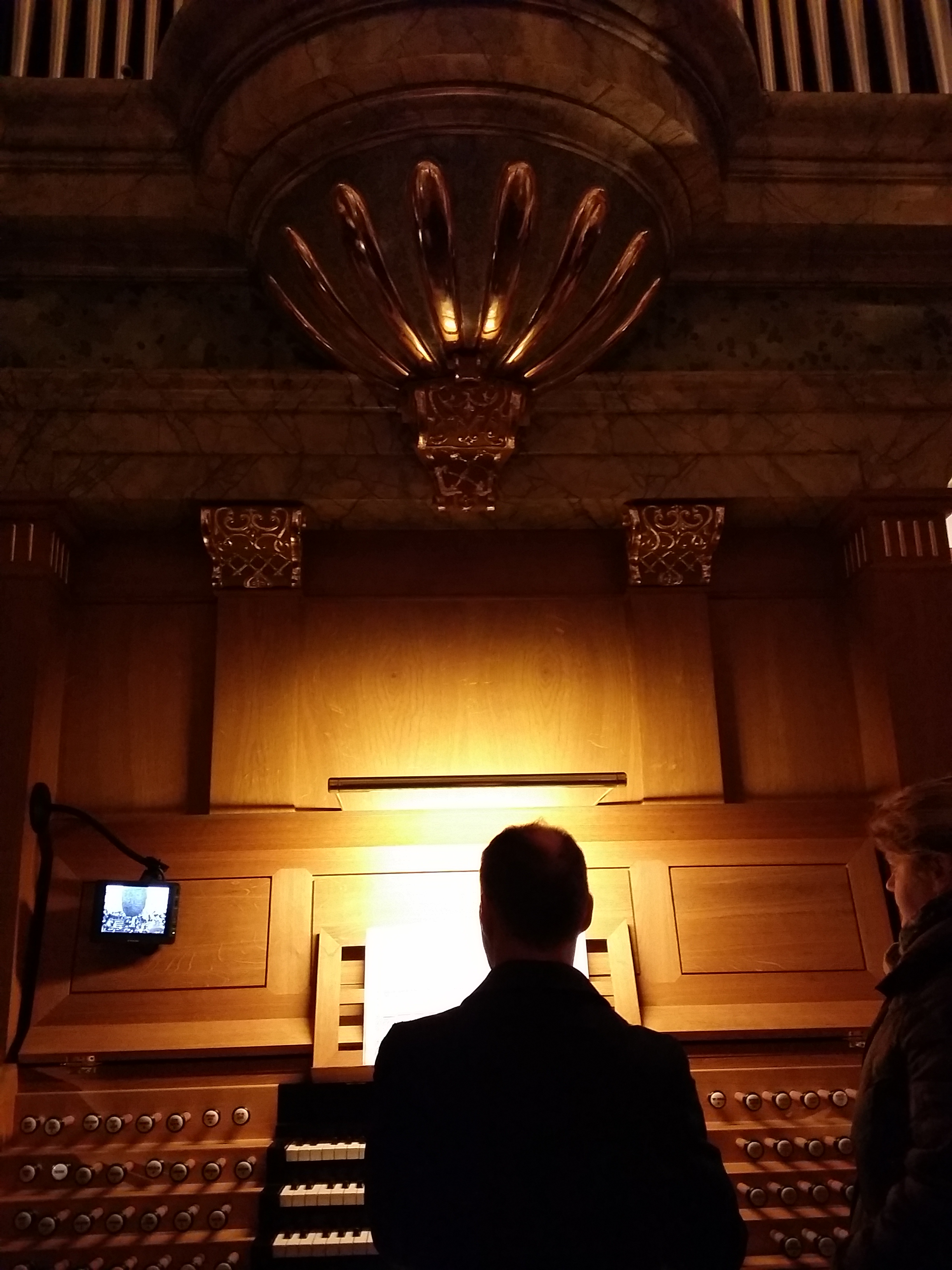 Und hier noch ein weihnachtlicher Gruß, das Lied „Stille Nacht, Heilige Nacht“ (Chorvereinigung St. Augustin), aufgenommen von der Orgelempore (daher etwas unscharf und mit Kunstwerk im rechten Teil).