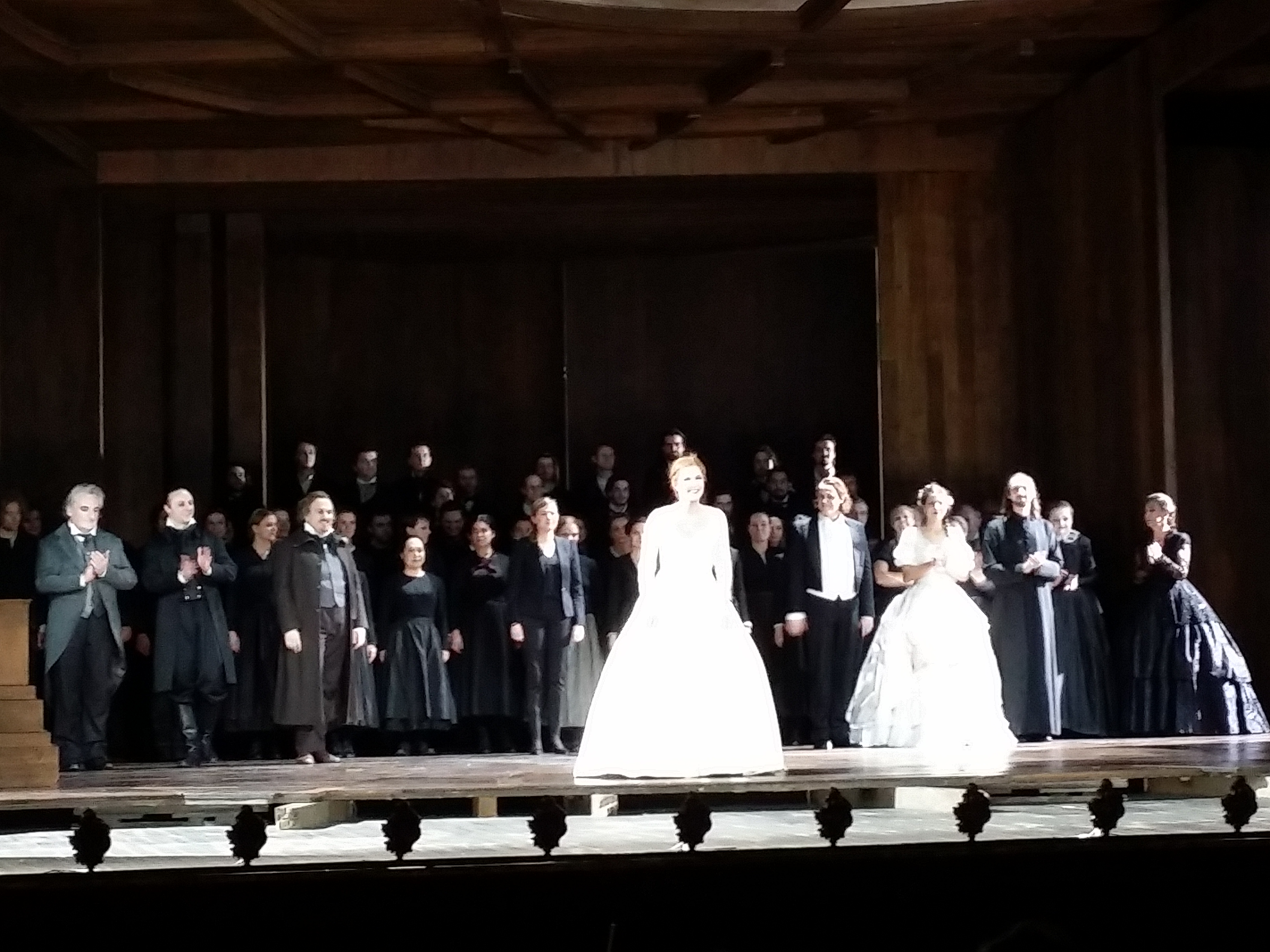 Loy verzichtet auf zeitgenössische Interpretationen (sehr schöne historische Kostüme!), die angesichts des Plots auch schwer möglich wären. Und wie die Geschichte angelegt ist, ist meiner Meinung nach auch der Schwachpunkt dieser Aufführung. Ich habe mich vorher nicht mit dem Inhalt beschäftigt und bin sozusagen völlig blank hingegangen, bin aber auch nicht zufrieden herausgekommen. Denn obwohl die Spannung durchaus aufgebaut wird und bis zum Ende nicht klar ist, wer la straniera wirklich ist, fällt die „Auflösung“ dann so nebenbei, so unlogisch und nur halb aus (ich kann nicht glauben, dass es im Libretto wirklich nur einen Satz dazu gibt), dass ich danach gleich nachlesen musste, was da wirklich los ist.