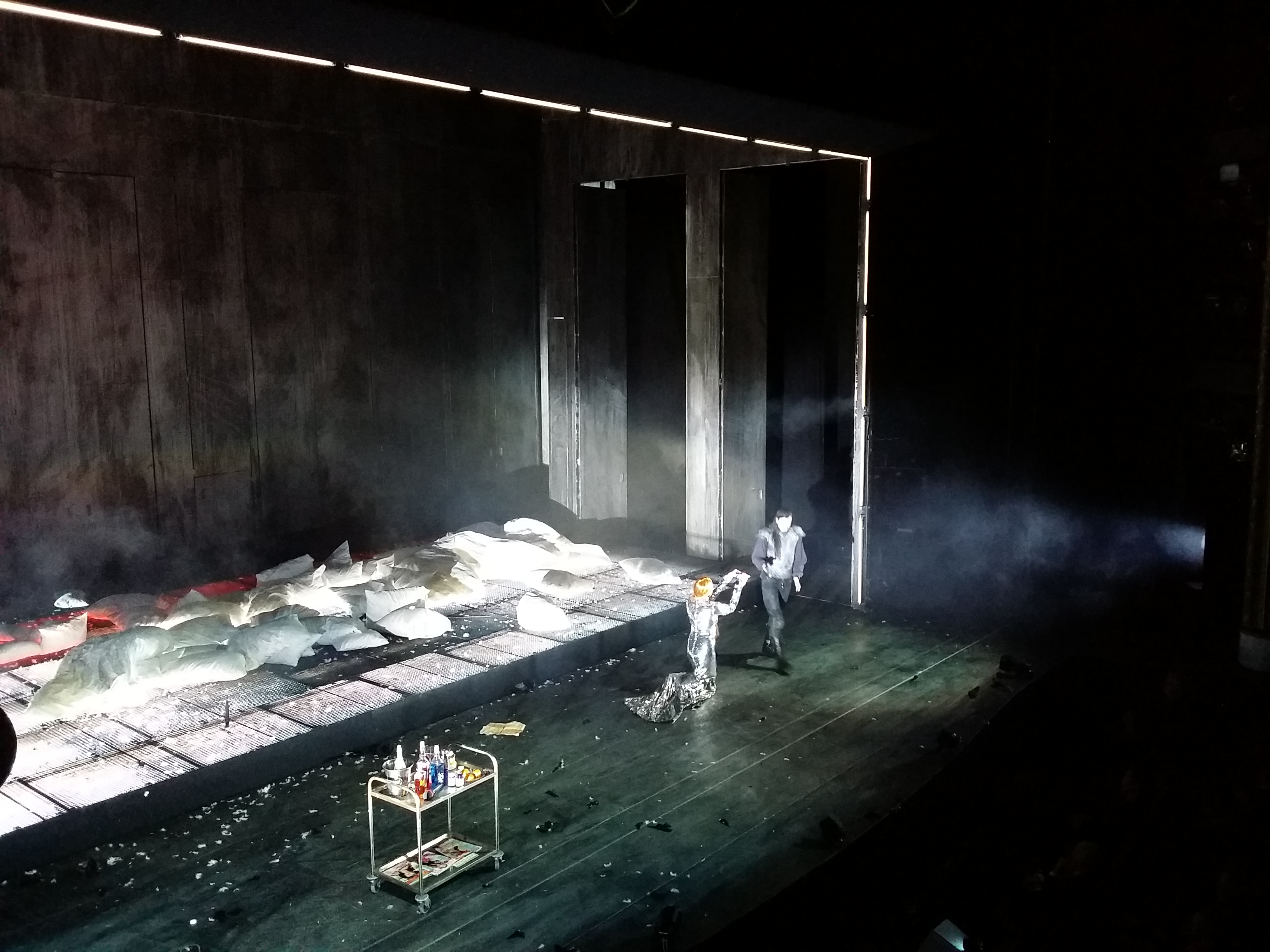 Obwohl von Regisseur David Bösch auf etwas über 2 Stunden zusammengekürzt und in das eindrucksvolle Bühnenbild von Patrick Bannwart gesetzt – die Geschichte vom Käthchen, das dem Grafen Wetter vom Strahl überall hin folgt, bis er es am Ende nach vielen Turbulenzen heiratet, ist eigentlich sehr blöd. Und obwohl ich Kleists Sprache mag, mit diesem „historisches Ritterspiel“ kann ich nicht viel anfangen.