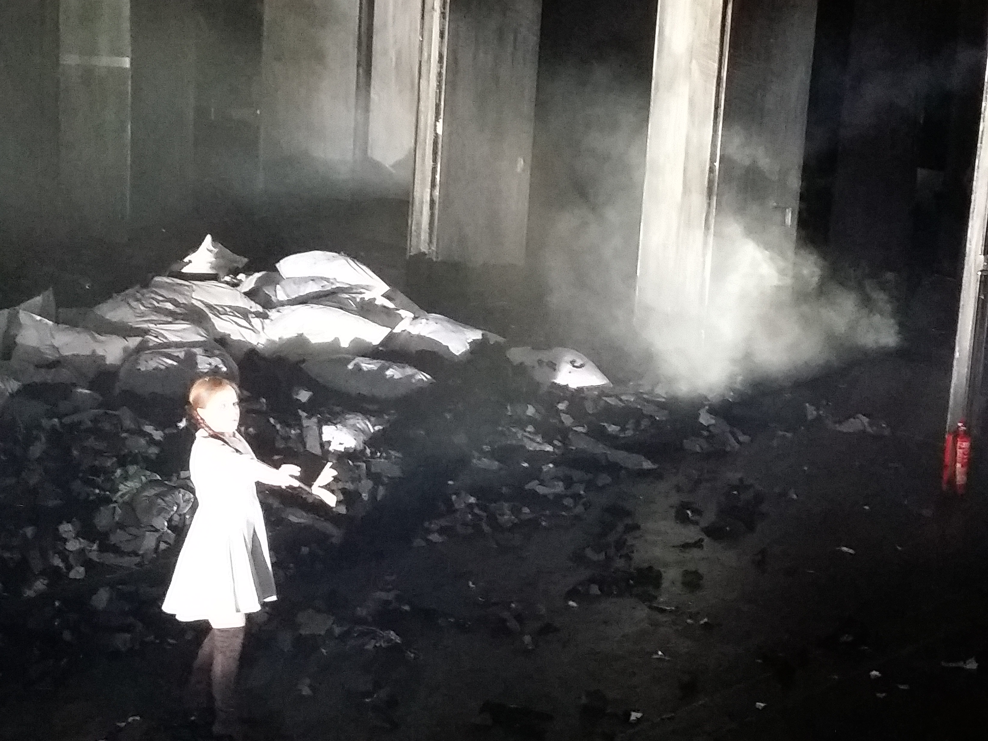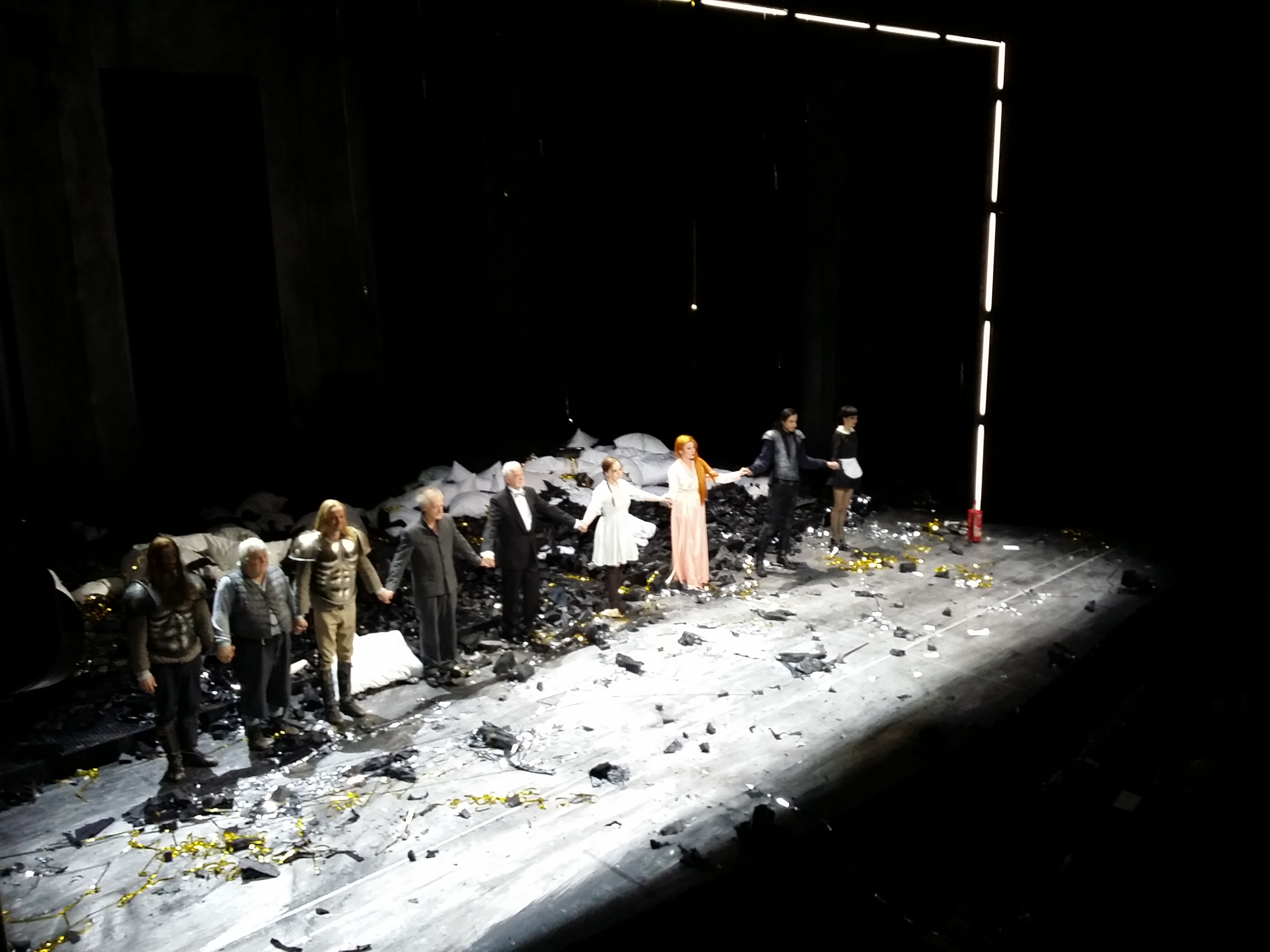 Am Ende ist die Bühne, wie meistens bei Bösch, total zugemüllt. Hier noch ein Blick auf den Putztrupp nach der Vorstellung: