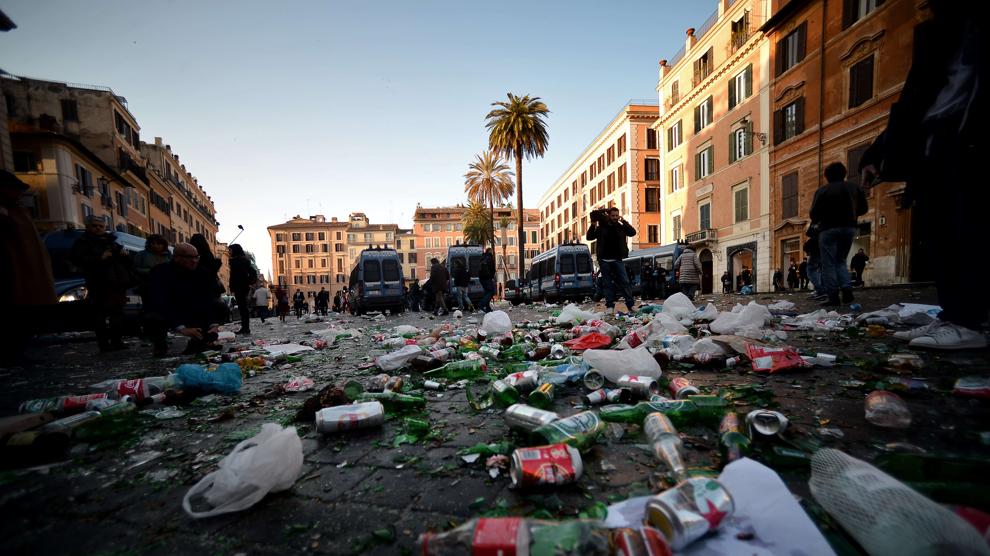 Als ich die ersten Bilder sah, war ich wirklich schockiert. Jetzt erwarte ich ja gar nicht, dass alle Rombesucher von der Kultur begeistert sind und sie schätzen können und wollen. Aber wer, bitte, kommt auf die Idee, einfach hinzufahren, gar nicht zum Fußballspiel zu gehen und sich stattdessen in der Stadt auszutoben und Kunstwerke zu zerstören? Ich verstehe nicht, was in diesen Köpfen vorgeht.
