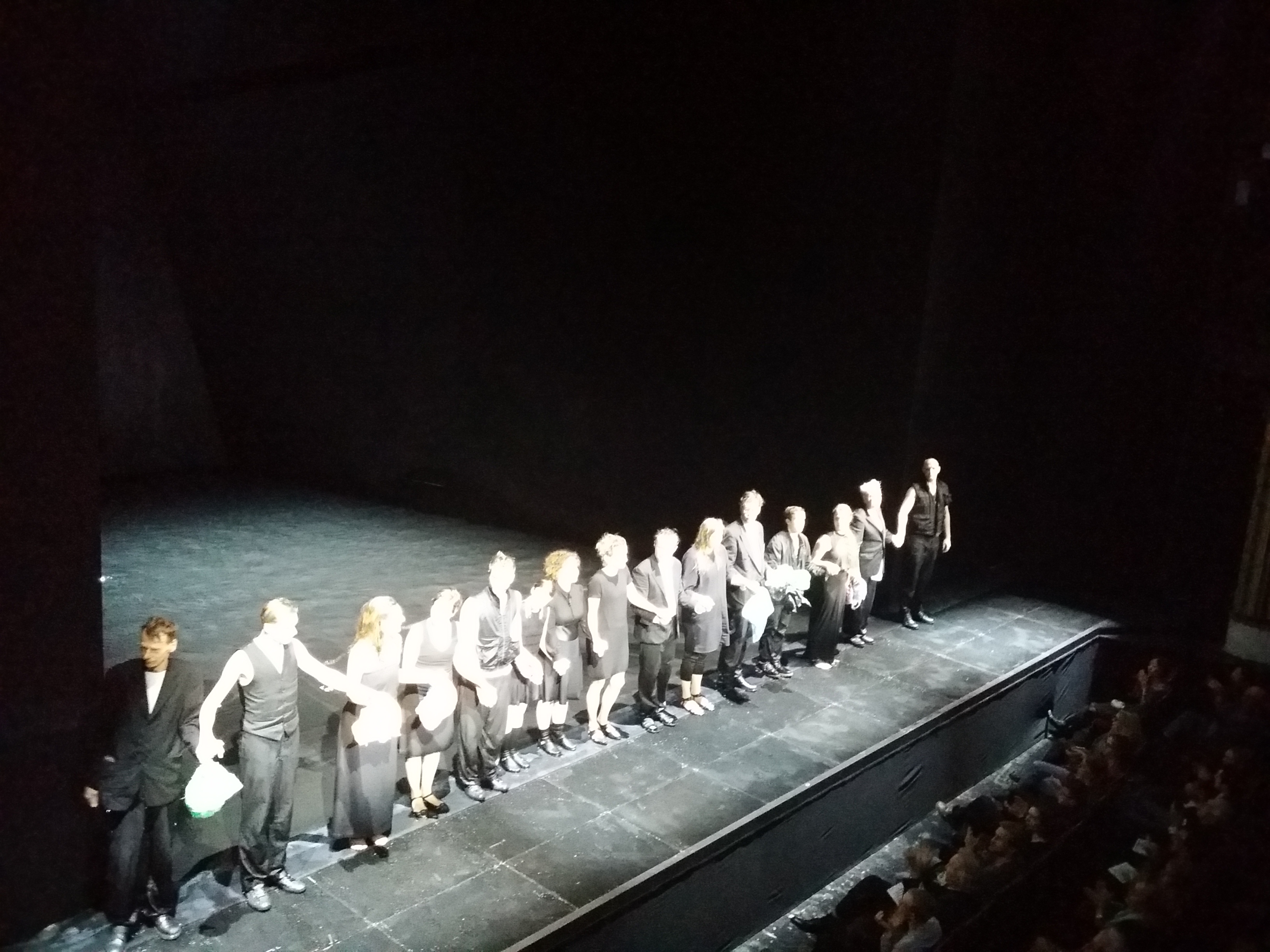 Ein ungemein exakter und deutlicher Chor, bestehend aus 7 Schauspielerinnen und 9 Schauspielern, geleitet von einem Chordirigenten, deklamiert Jelineks kunstvolle Worte. Es ist eine große anonyme Masse, aus der sich manchmal einzelne Figuren lösen, ohne dass sie zu tatsächlichen Theaterfiguren werden.