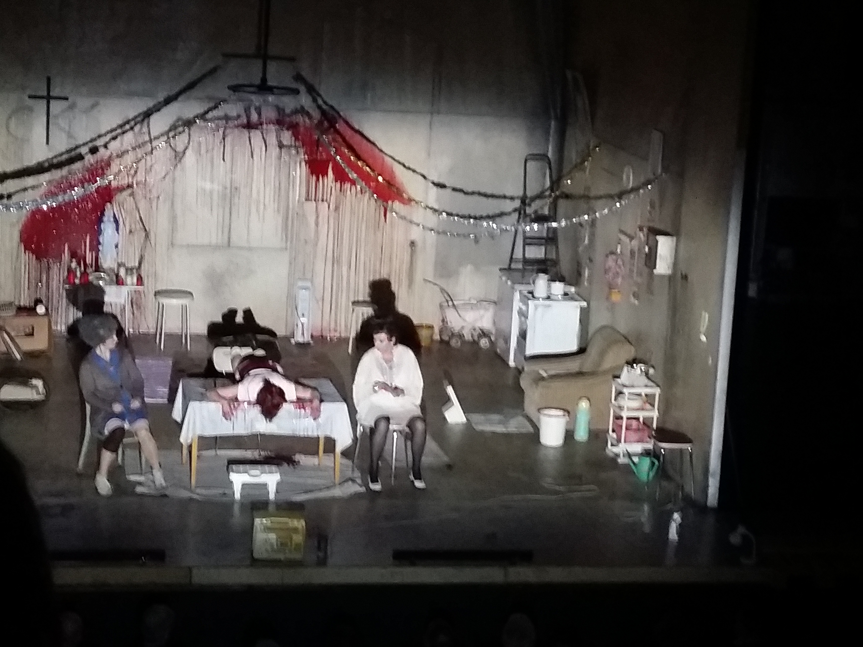 In der klugen Regie von David Bösch, auf einer genial grauslichen Bühne von Patrick Bannwart, entfaltet sich das Spiel der drei Frauen: Erna, die Putzfrau (Regina Fritsch), die an ihrem versoffenen Sohn verzweifelt und sich eine Pilgerreise mit ihrem Leberkäsfleischer wünscht; Grete (Barbara Petritsch), die die „Lustige“ ist und von einem Tubaspieler träumt; und das Mariedl (Stefanie Dvorak), etwas zurückgeblieben, seeeehr katholisch und im Hauptberuf Beseitigerin von Kloverstopfungen „mit der bloßen Hand“. In dieser Konstellation werfen sich Erna und Grete immer mehr Gemeinheiten zu, das naive Mariedl bekommt zuerst Schläge und landet schließlich als Leiche im Keller.