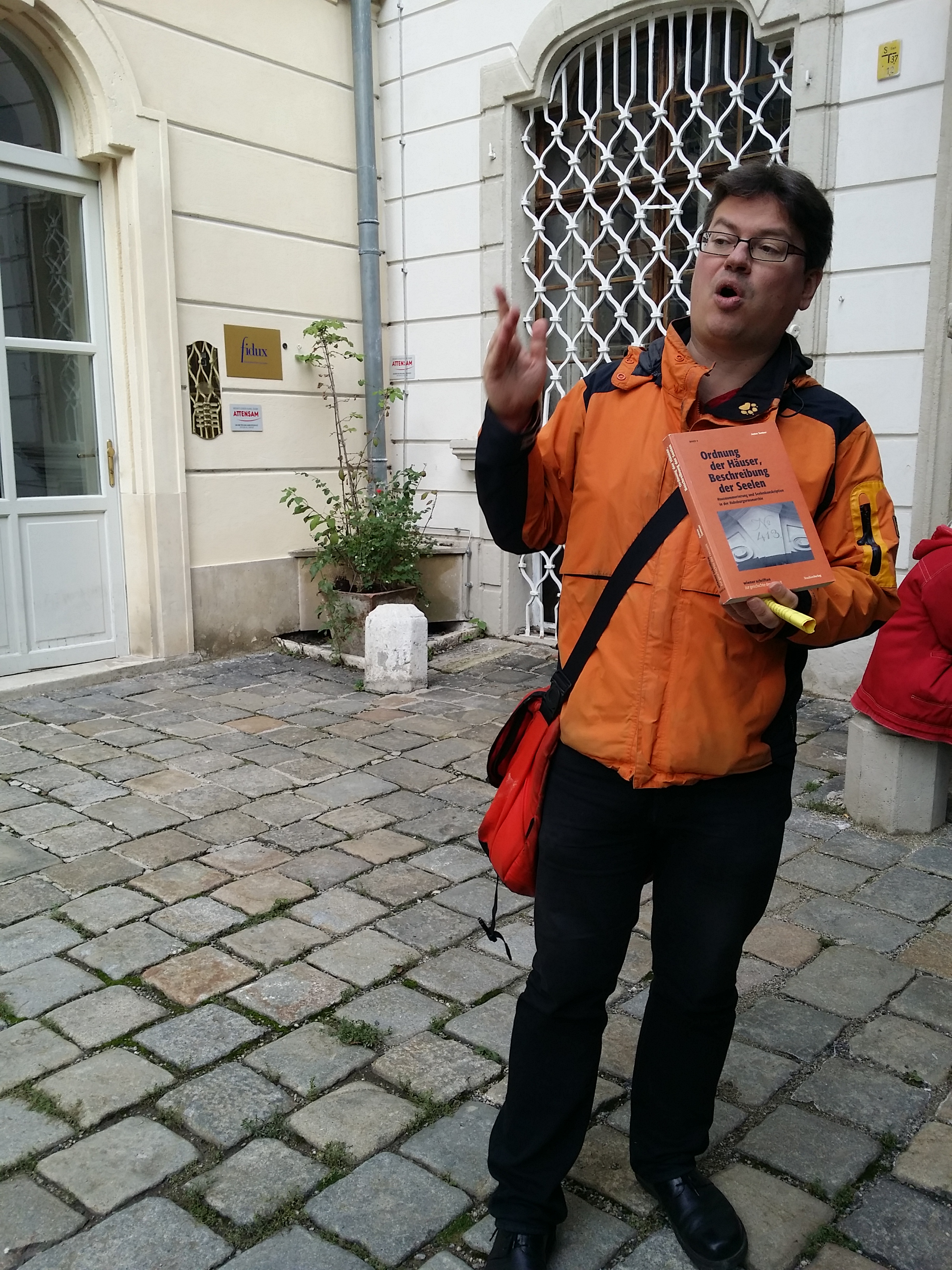 Anlass für meinen Blogbeitrag ist eine „Hausnummernflanerie“, an der ich vor kurzem teilgenommen habe. Im Zuge eines vergnüglichen Stadtspazierganges durch Wien zeigt Tantner einer interessierten Zuhörerschaft kleine, oftmals übersehene Nummern, die – richtig interpretiert – ein ganzes Spektrum an Geschichten eröffnen.