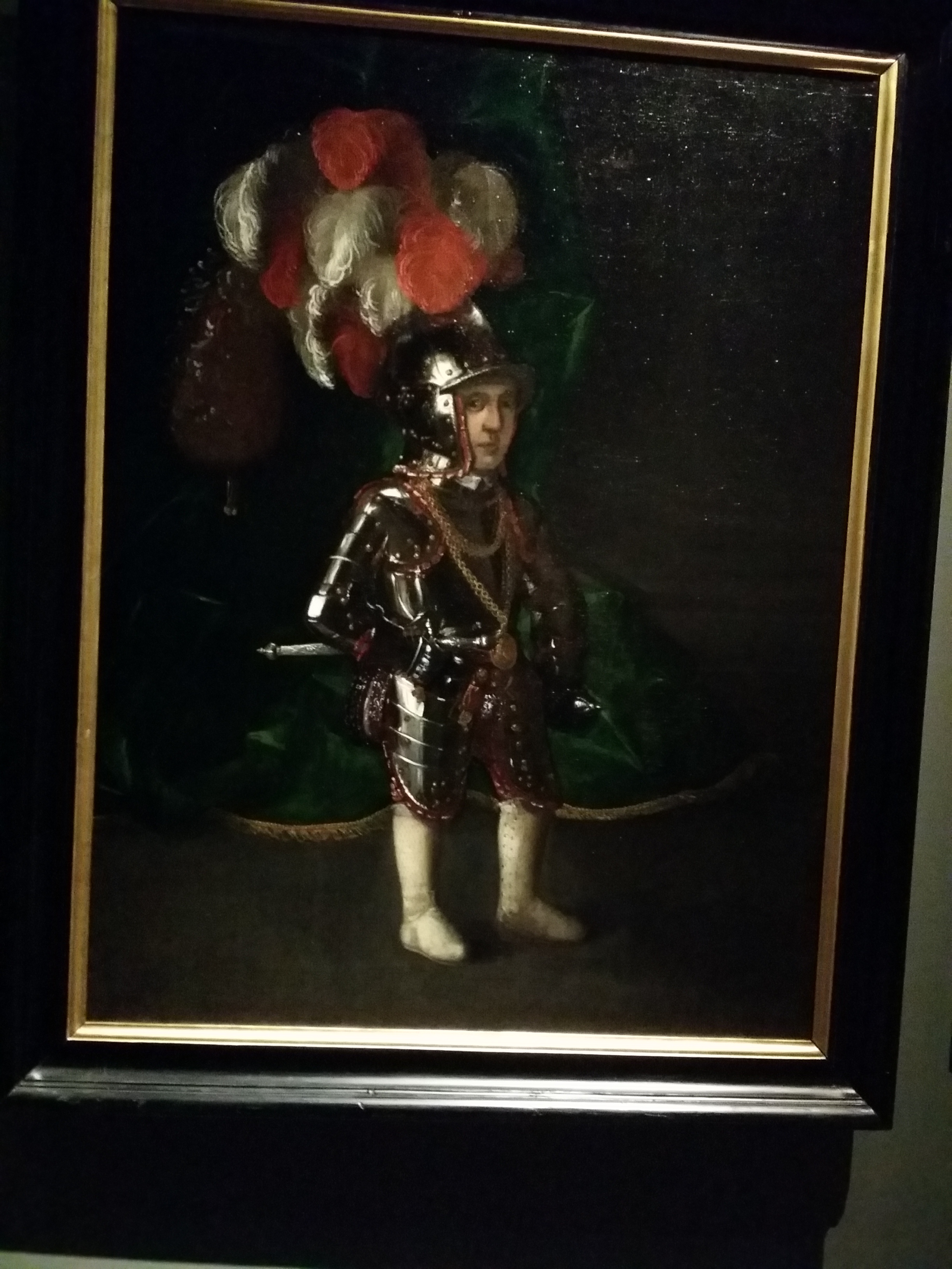Wahrscheinlich der Hofzwerg Thomele in Rüstung (ca. 1560-1580). In einer solchen Rüstung sprang er bei einem Hochzeitsfest zum Gaudium der Gäste aus einer Pastete.