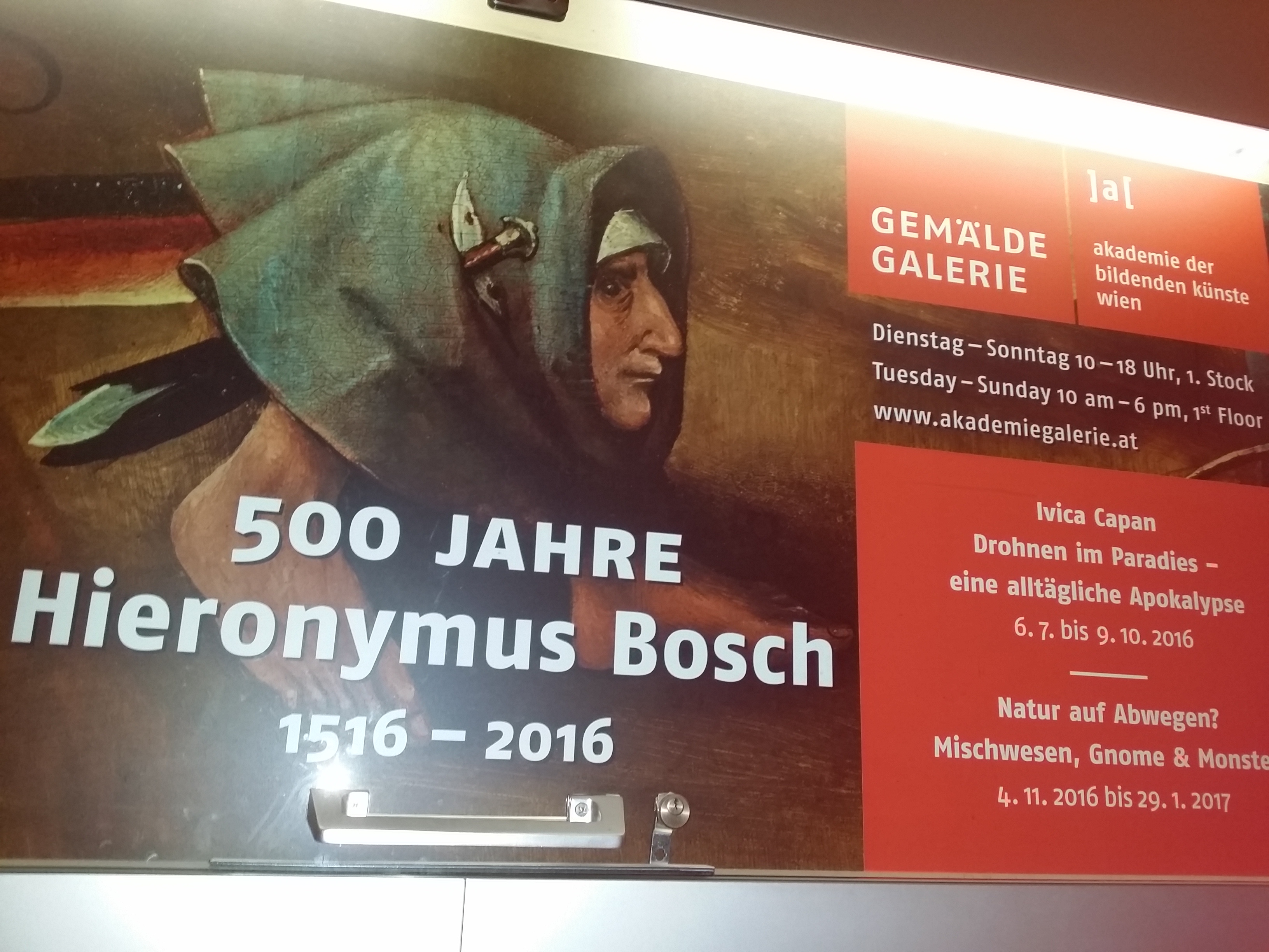 Zunächst einmal hat letzte Woche in der Gemäldegalerie der Akademie der Bildenden Künste in Wien die kleine, aber feine Ausstellung „Natur auf Abwegen? Mischwesen, Gnome und Monster (nicht nur) bei Hieronymus Bosch“  aufgemacht. Die Akademie besitzt ja mit dem Triptychon des „Jüngsten Gerichts“ eines der Hauptwerke des Malers.
