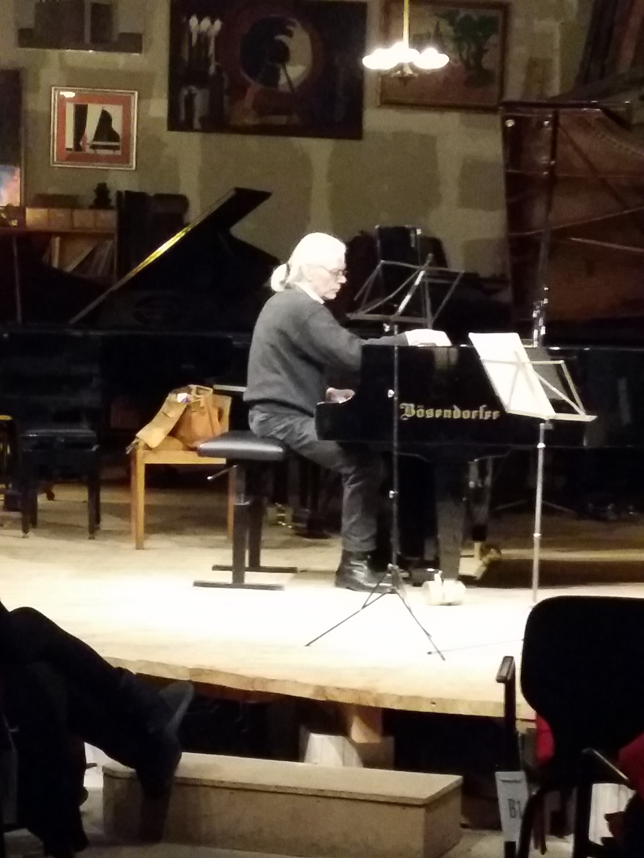 Abseits der üblichen Konzert-Locations, in einem netten Winkel in Wedding, steht eine große Fabrikshalle. Darin werden Pianos repariert und das sieht man. Überall Klavierteile und Klaviere, die Atmosphäre ist die einer Werkstatt – und doch auch der perfekte Rahmen für die Konzerte, die der Gründer und Betreiber Christoph Schreiber (Arzt im Hauptberuf) hier veranstaltet. Es geht lässig zu, Schreiber möchte den Besuch bewusst niedrigschwellig halten. Im Eintrittspreis sind auch Getränke enthalten, die man sich selbst einfach davor, danach und in der Pause nimmt und zu den Gesprächen mit Künstlern und Besuchern mitnimmt.