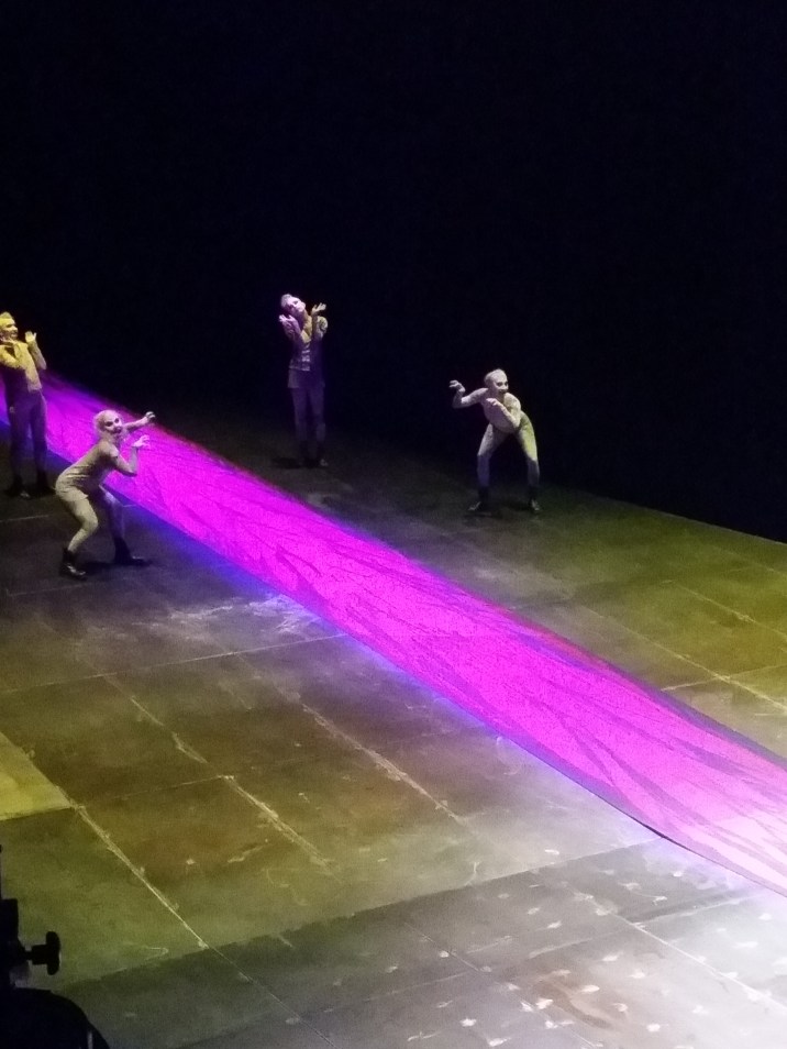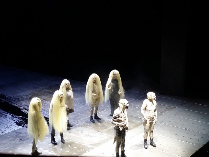 Dafür, dass ich mir einmal das ganze Stück (in drei Teilen) an einem Nachmittag und zwei Abenden zu Gemüte führte, war der Abend im Burgtheater, wo seit kurzem wieder die griechische Tragödie  „Orestie“ von Aischylos auf dem Programm steht, trotz Mord und Totschlag richtig entspannend . Zwei Stunden und ein bisschen, auf diese Länge wurde der Text zusammengestrichen. Sozusagen eine schnelle Nachhilfe in Sachen griechischer Mythologie. Konzentration auf den Text ist aber ein Muss, sonst kippt man aus dem Geschehen und verliert den Faden.