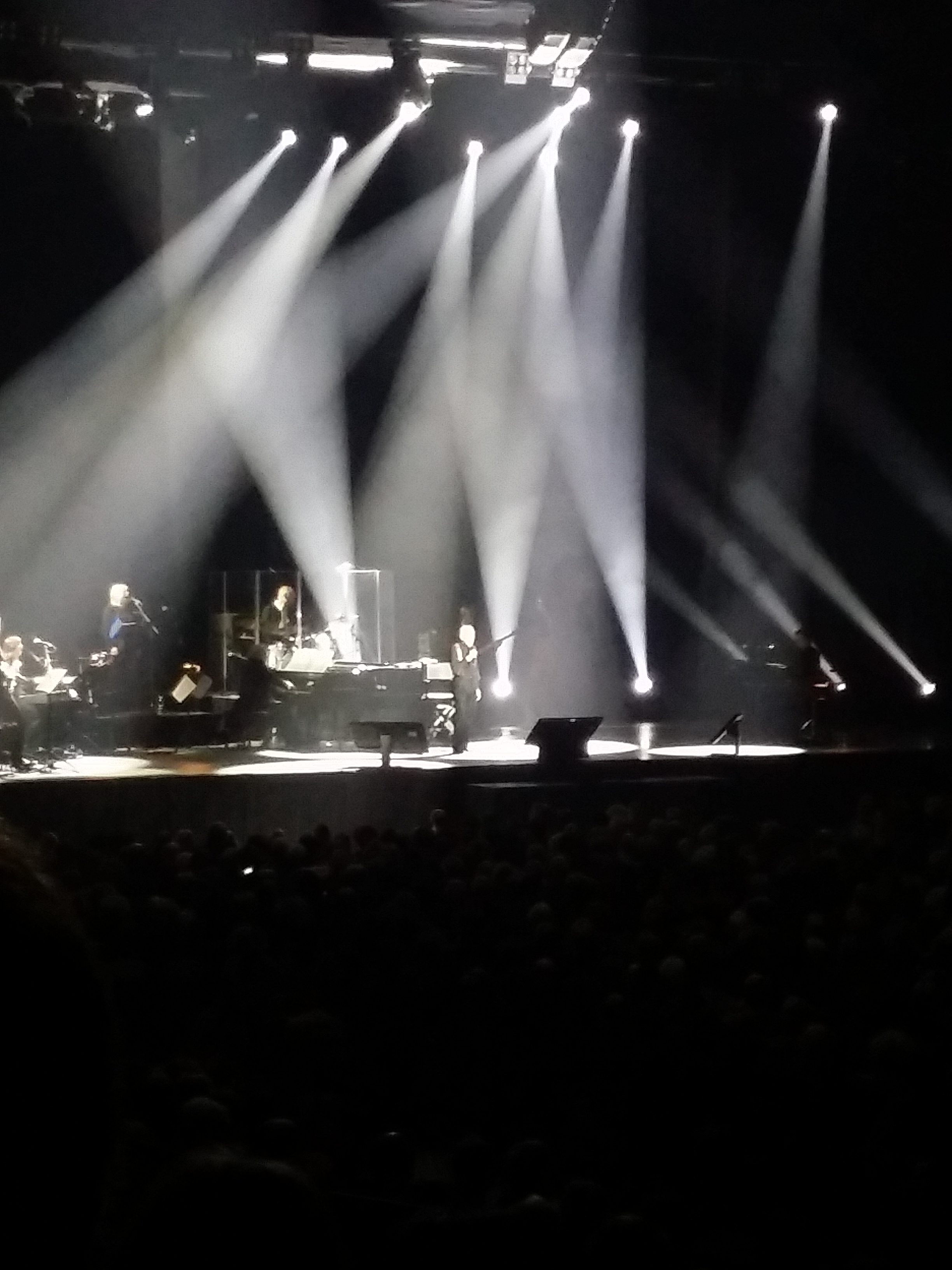 Es schwingt schon Melancholie mit, v.a. wenn er von vergangener Jugend und dem Alter singt. Und auch spricht: Denn zwischen den Chansons macht er sich über sein Jahre lustig und erklärt, dass zur Sicherheit ein Teleprompter die Texte zeigt und er hin und wieder in einem Sessel Platz nehmen wird.  Aznavours Auftritt war jedoch alles andere als ein Blick nach hinten! Er hatte einige neue Lieder mitgebracht, denen dann Allzeit-Hits wie „She“, „La Mamma“, „La Bohème“  oder „Comme ils disent“ folgten. Ein tobendes Publikum zollte ihm mit standing ovations gebührenden Beifall. Denn Aznavour strahlt auch eine Sympathie aus, die ihn für mich immer schon zu einem besonderen Künstler machte.