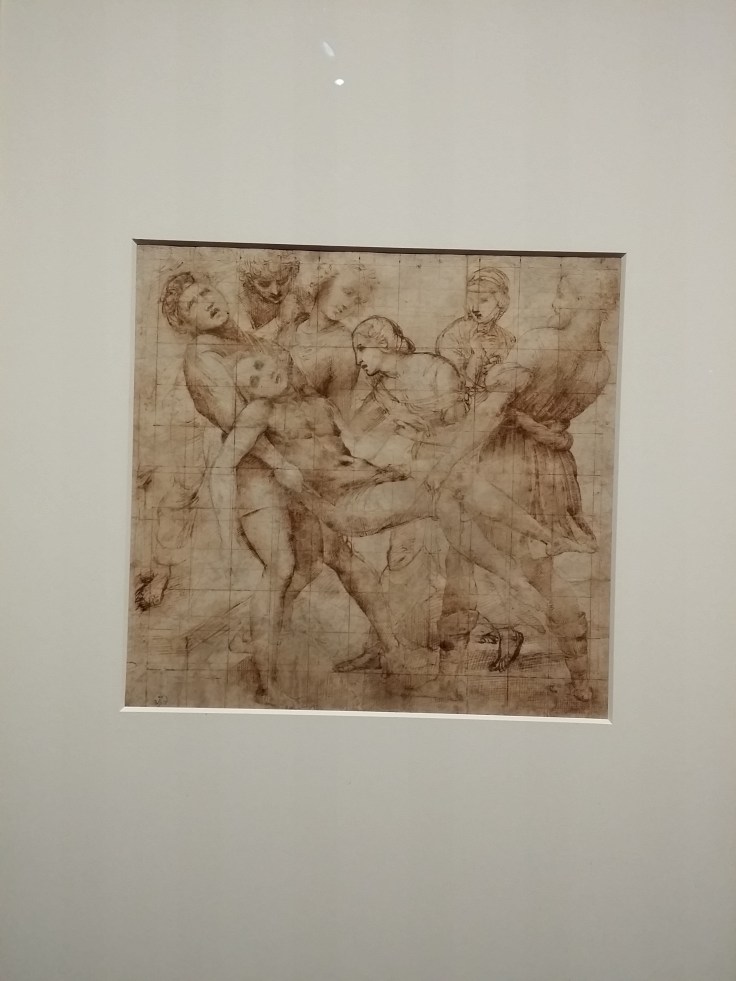 Chronologisch aufgebaut wird besonders gut gezeigt, wie Raffael gearbeitet hat, von den ersten Entwürfen über den Karton bis zu den ausgeführten Malereien. Es ist faszinierend zu sehen, wie der gesamte Entwurfsprozeß abgelaufen ist und wie sich der Künstler dem endgültigen Bild angenähert hat. 18 Gemälde ergänzen die Präsentation, die in dieser Qualität wohl nicht mehr so bald hierzulande zu sehen sein wird.
