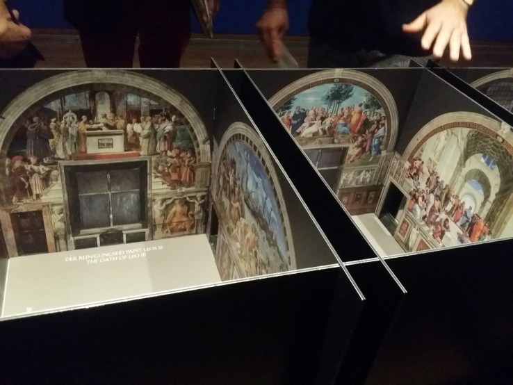 Besonders anschaulich ist der Nachbau der Stanzen des Vatikans mit Raffaels Freskenschmuck – den Entwürfen dazu gegenübergestellt